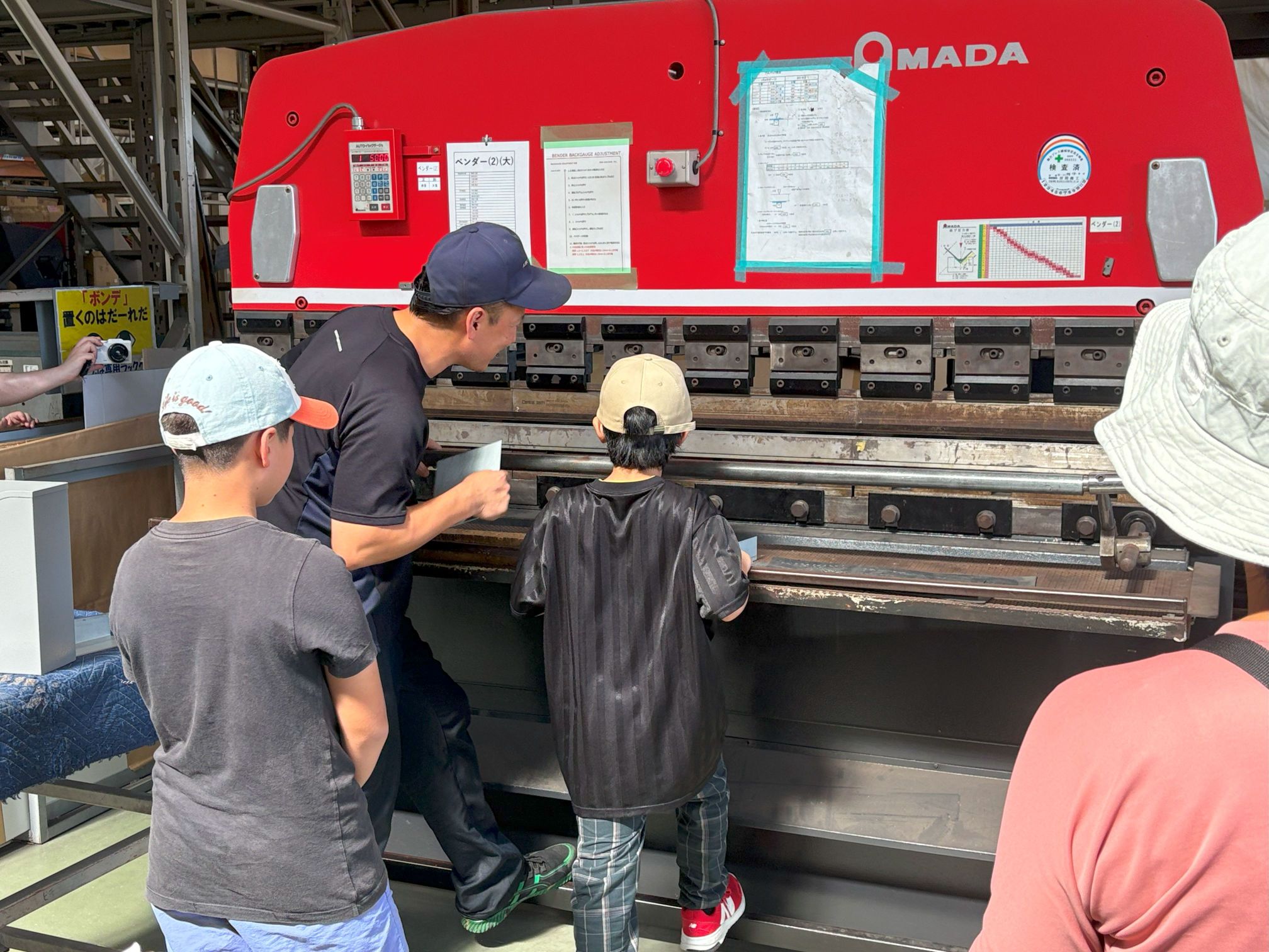 ベンダーとシャーリングを使って実際の板材を曲げる体験