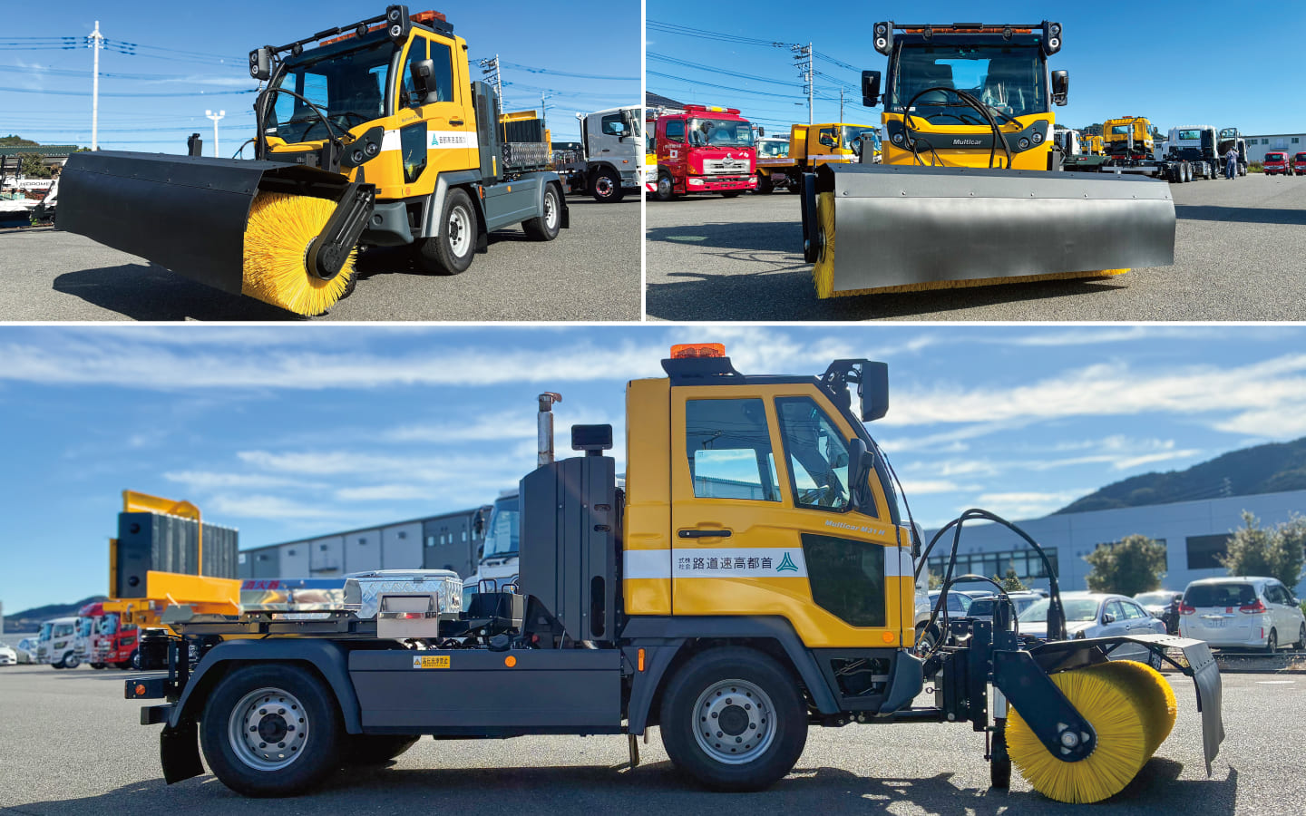 降雪・積雪時には、ブラシを路面に接地させ高回転で運転することで路面の凍結を防止するとともに、融雪剤の浸透を促す用途で、除雪車両として運用される予定です。